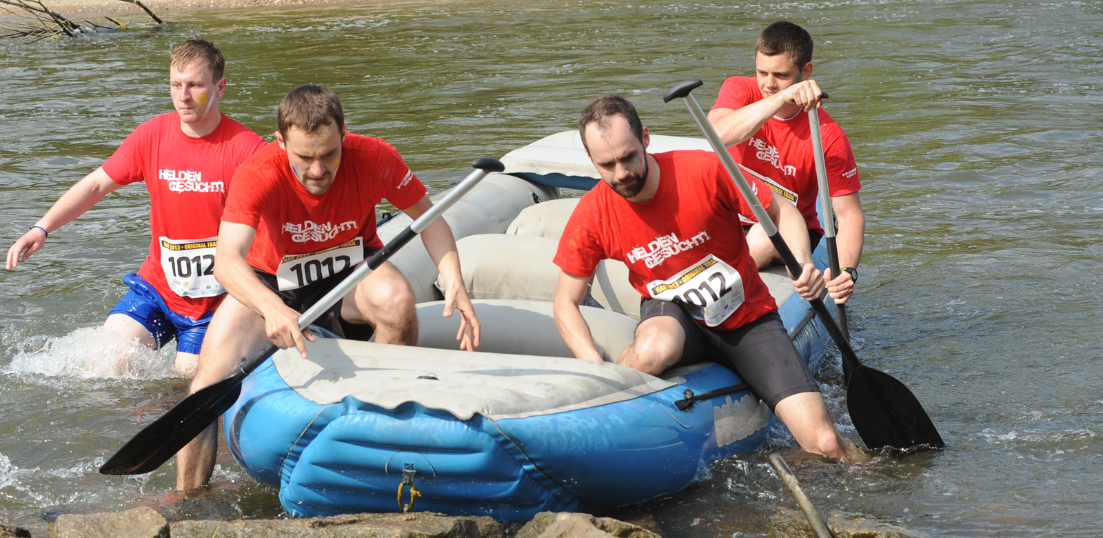 Zunächst lauft Ihr mit Eurem Team eine 1 km lange Einführungsrunde zur "Erwärmung". Anschließend dürft Ihr Euch auf die Laufstrecke begeben und entlang der Neiße nach Nieder-Neundorf laufen. Hier geht es ab in die Boote und paddeln bis Rothenburg. Dort angekommen, gilt es schnell aus den Booten heraus zu kommen und ab auf die Hinderniss-Strecke, wobei alles in Teamleistung erfolgt.